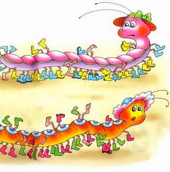 В класс бегут сороконожки.